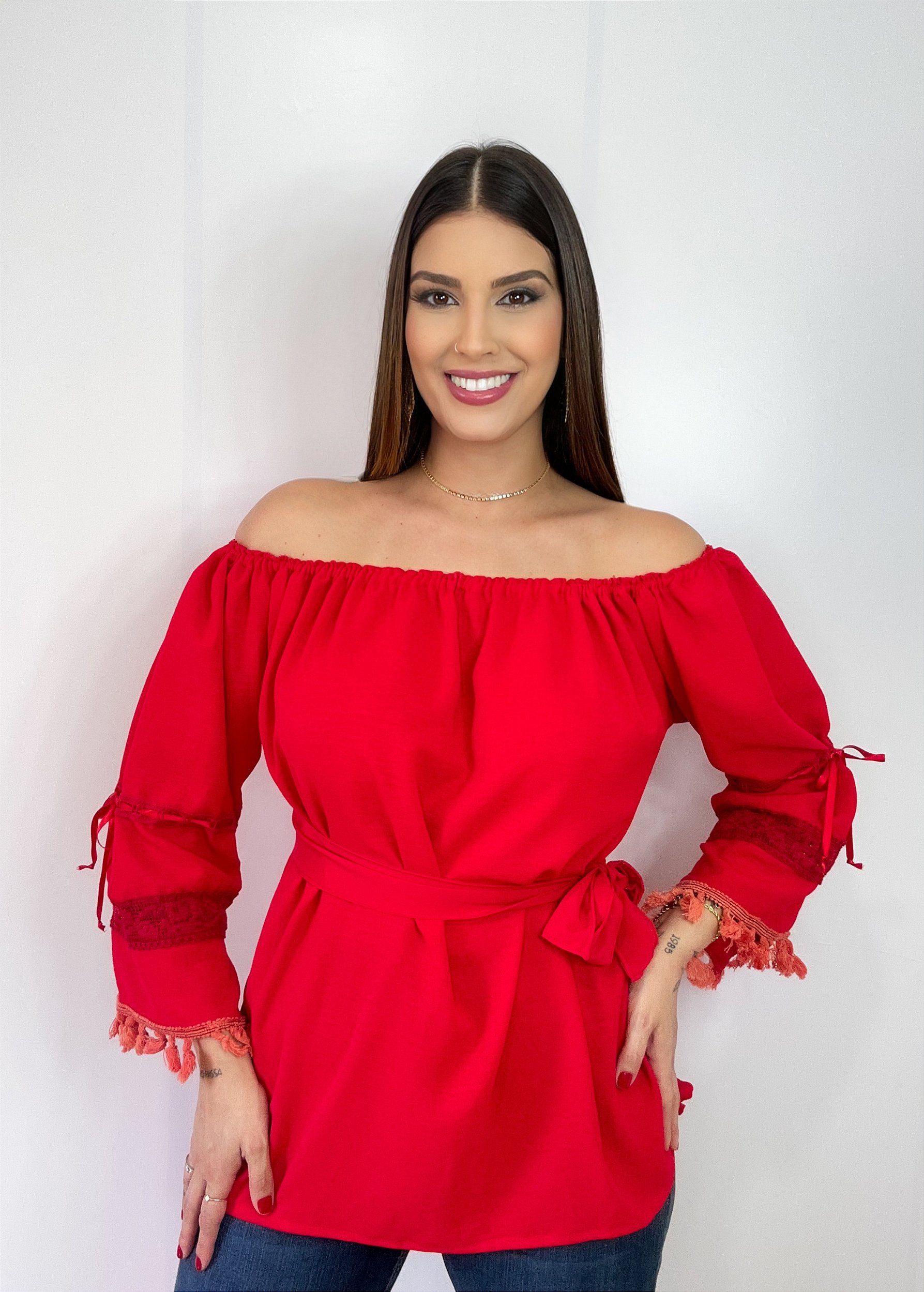 Blusa Modelo Ciganinha Ombro a Ombro Moda Luxo Vermelha