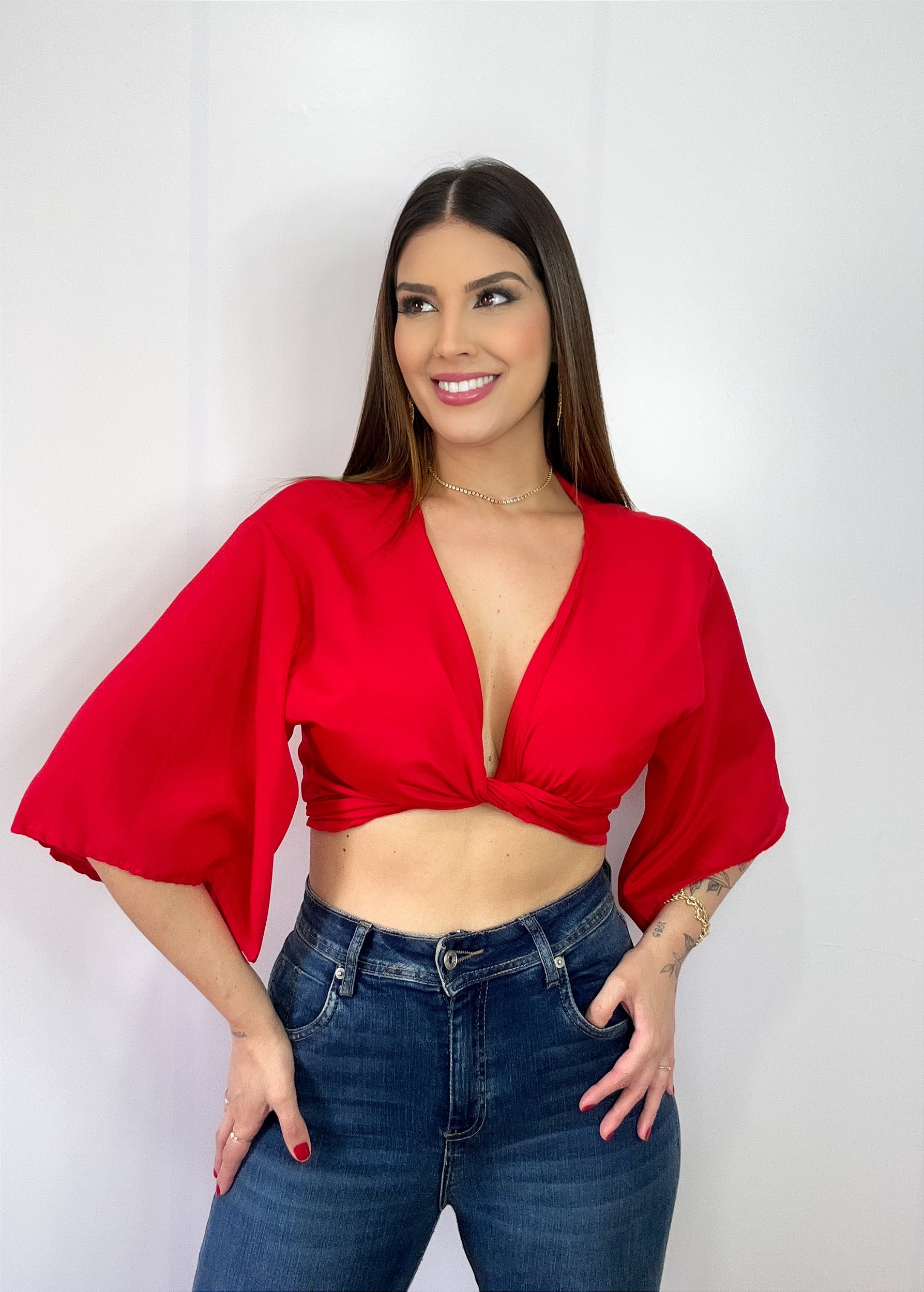 Bolero Blusa Cigana Blogueira Vermelho
