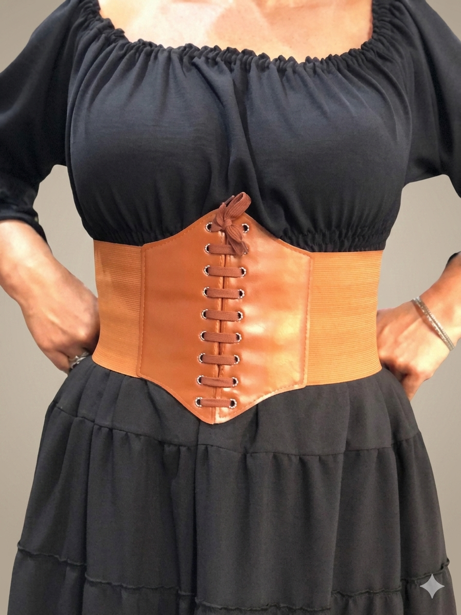 Corset Espartilho Corselet Corpete Brilhoso Cinta Modeladora Marrom