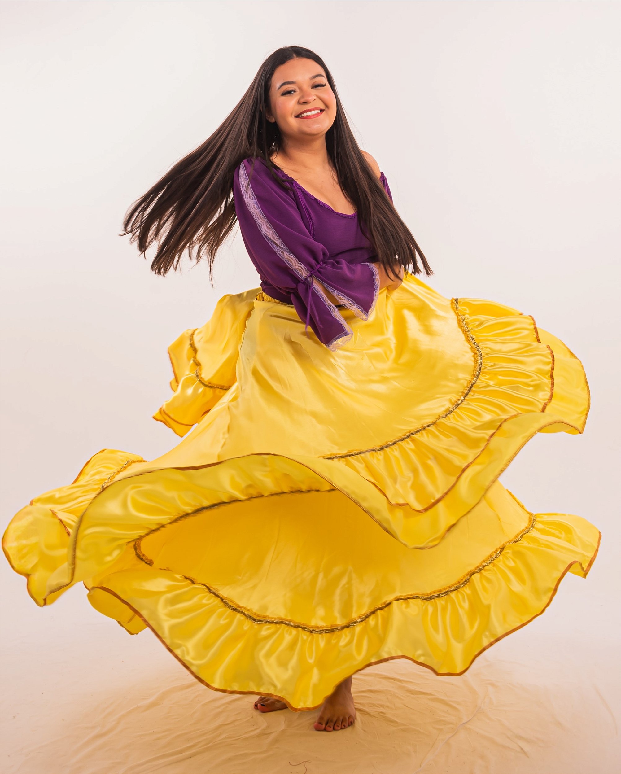 Saia Cigana Longa com 1 babado com 14 metros de roda modelo Cigana Madalena Amarela