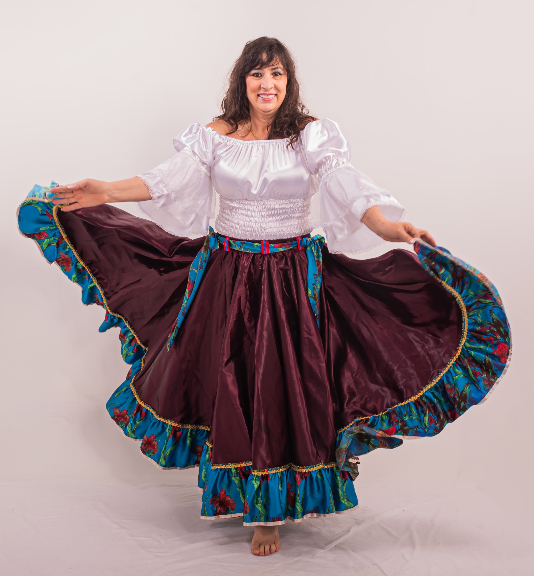 Linda Saia Cigana confeccionada em Cetim com Babado em Cetim além de fino acabamento, com aproximadamente 12 metros de roda.