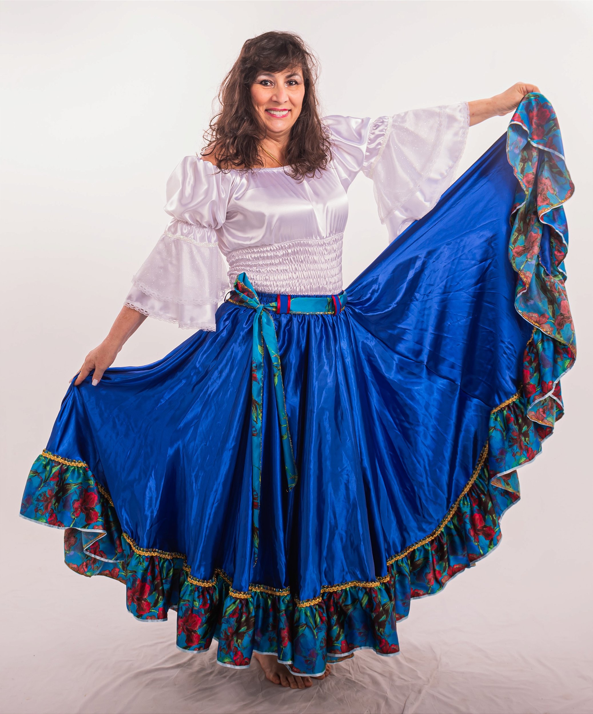 Saia Longa Cigana Modelo 1 Babado com 12 metros de roda Azul