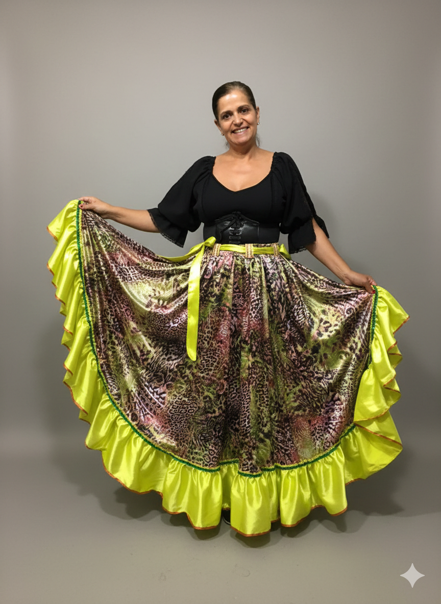 Saia Longa Cigana Modelo 1 Babado com 12 metros de roda Verde Limão