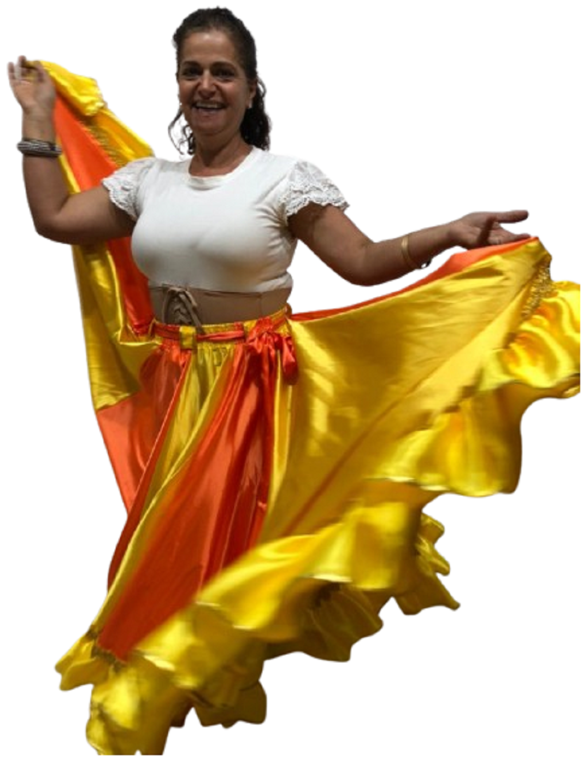 Saia Cigana Nesgas Laranja e Amareloa 1 Babado com 14 metros de roda