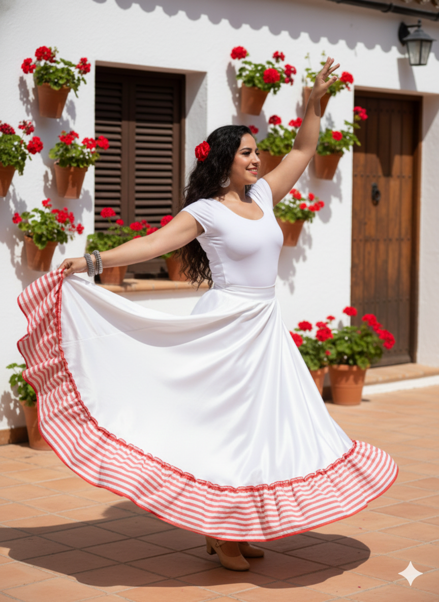 Linda Saia Cigana confeccionada em Acetinado com babado em Acetinado, com detalhes em sianinhas com um fino acabamento trazendo uma elegância especial para sua peça, com aproximadamente 14 metros de roda