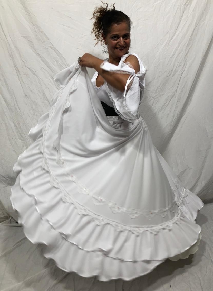 Linda Saia Cigana confeccionada em Crepinho com Babado em Crepinho além de fino acabamento, com aproximadamente 14 metros de roda.