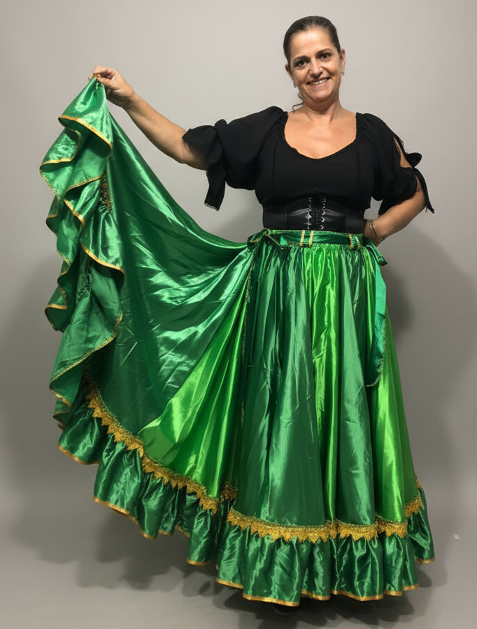 Saia Longa Cigana Modelo 1 Babado com 14 metros de roda Verde