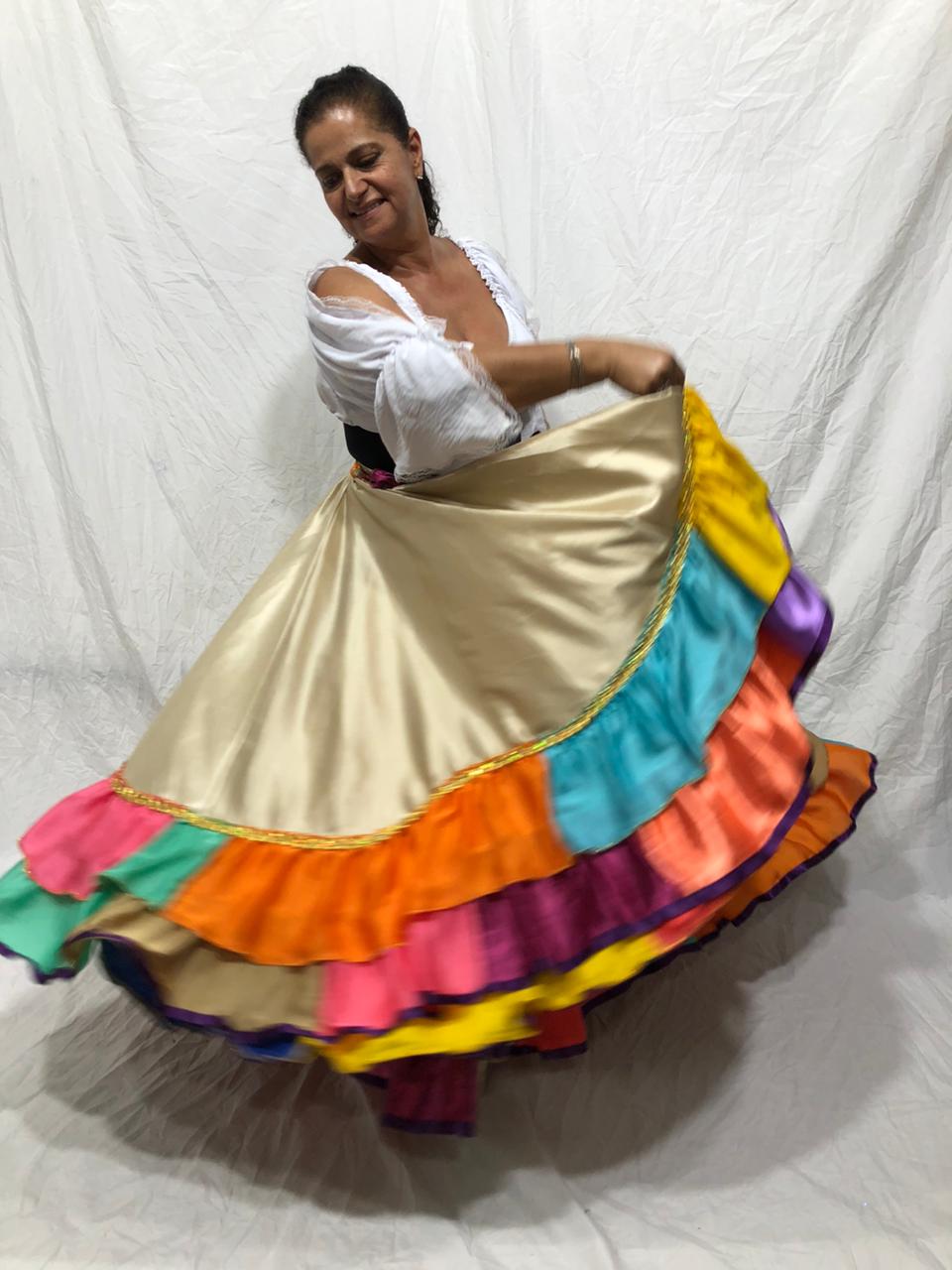Saia Longa Cigana Modelo 2 Babados com 14 metros de roda