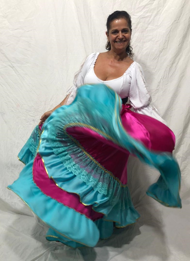 Saia Longa Cigana Modelo 2 Babados com 14 metros de roda