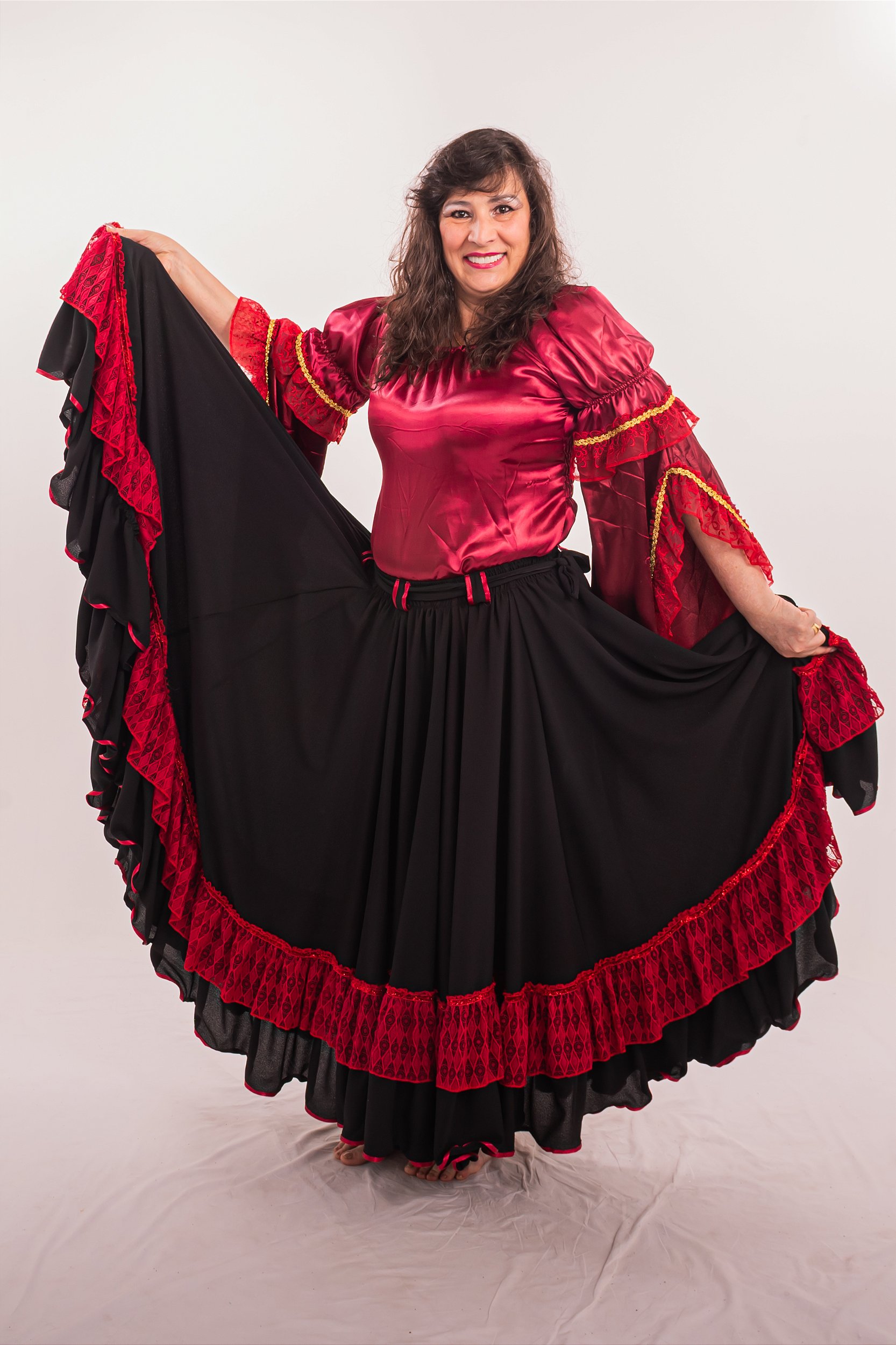 Linda Saia Cigana confeccionada em Acetinado com Babados em Acetinado e Renda além de fino acabamento, com aproximadamente 14 metros de roda.