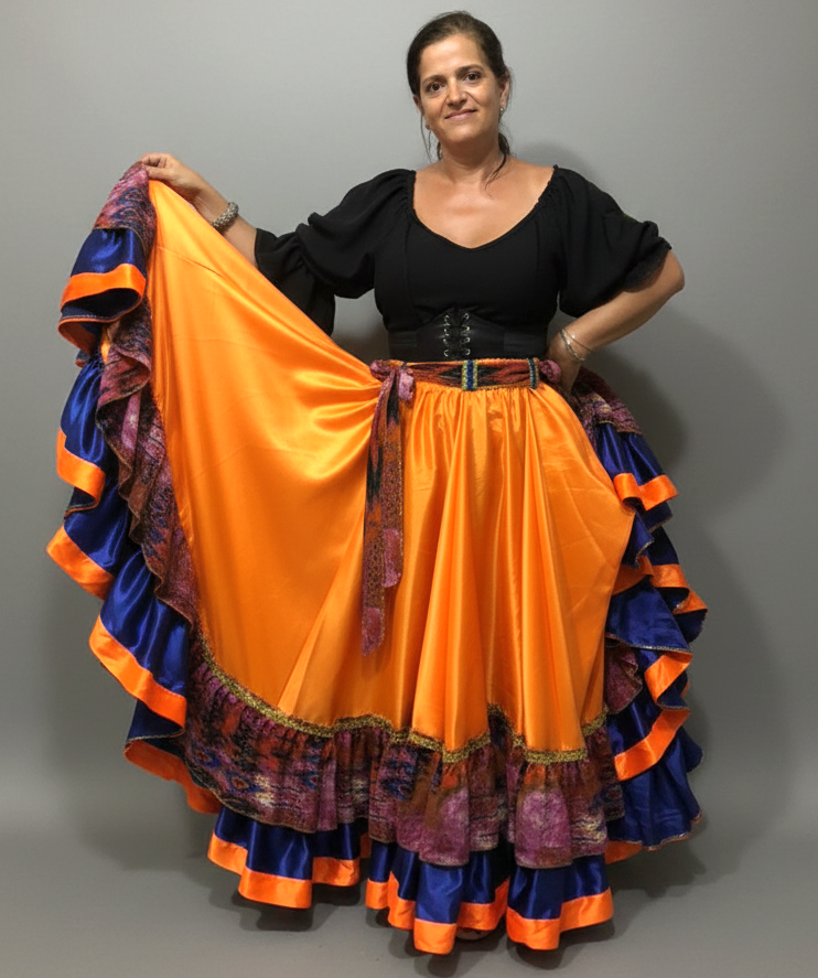 Saia Longa Cigana Modelo 2 Babados com 14 metros de roda
