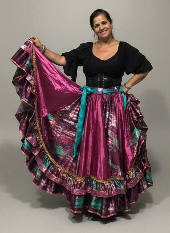 Saia Longa Cigana Modelo 2 Babados com 14 metros de roda