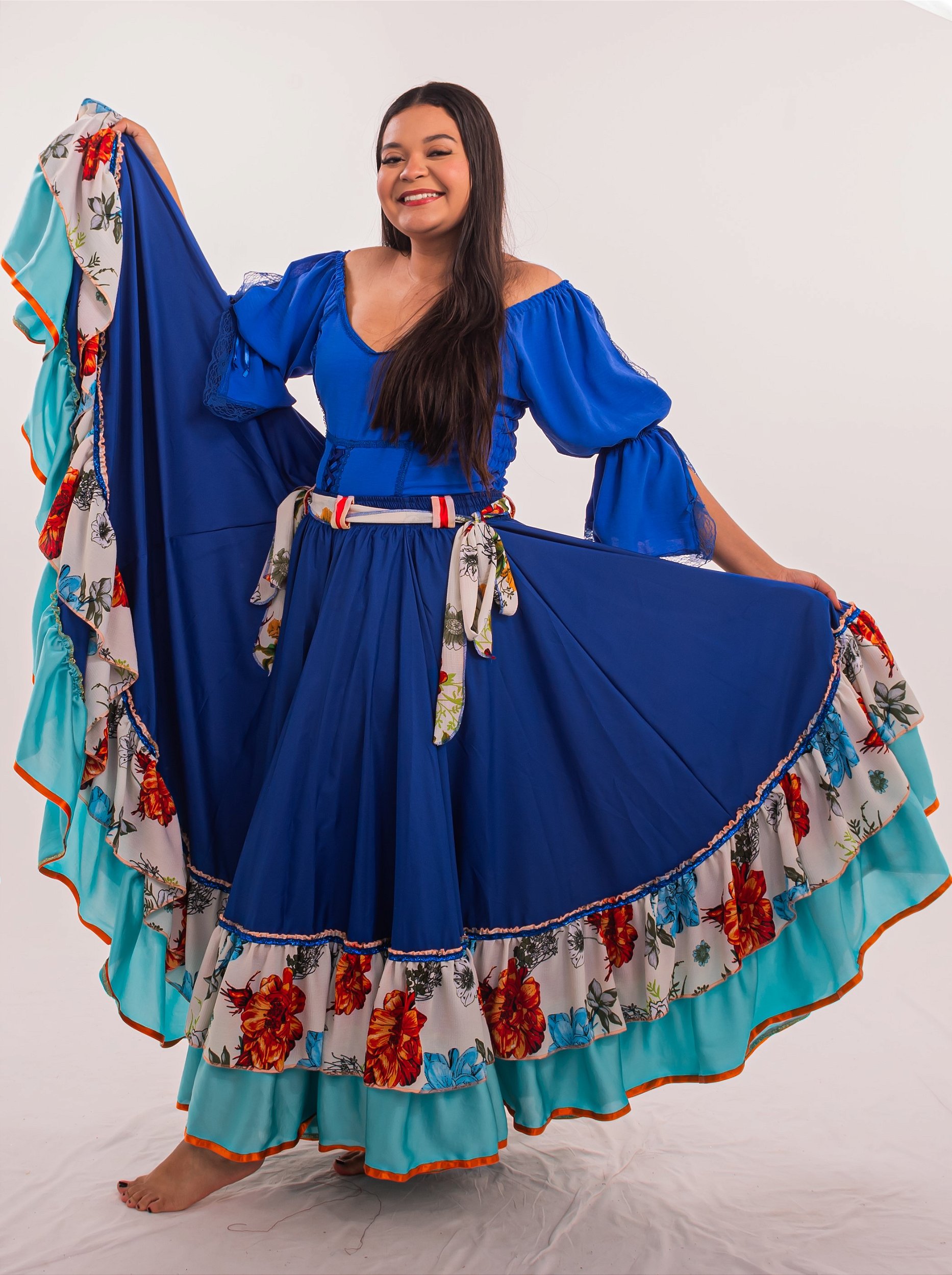 Linda Saia Cigana confeccionada em Acetinado com Babados em Crepinho e Acetinado além de fino acabamento, com aproximadamente 14 metros de roda.