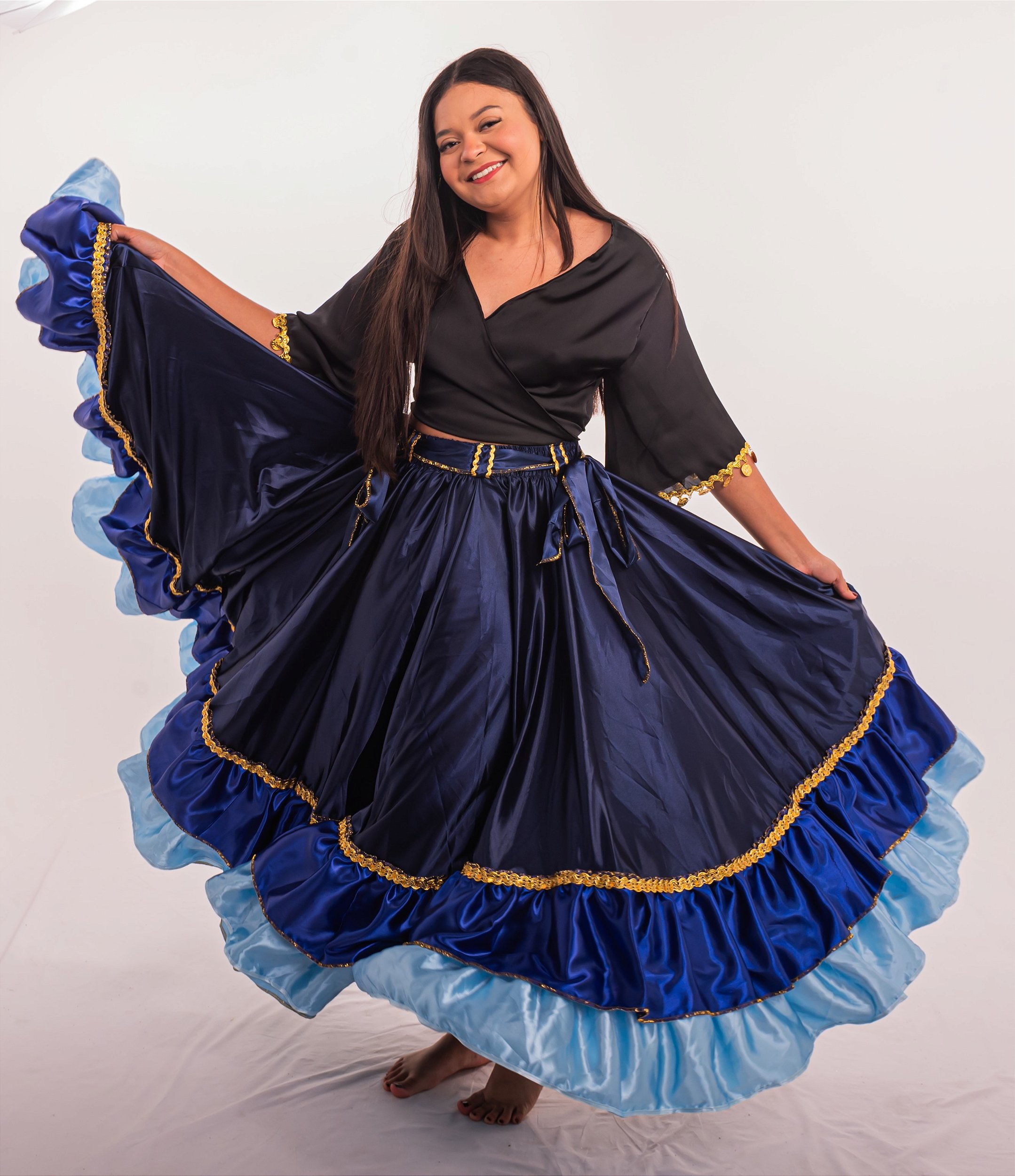 Saia Longa Cigana Modelo 2 Babados com 14 metros de roda