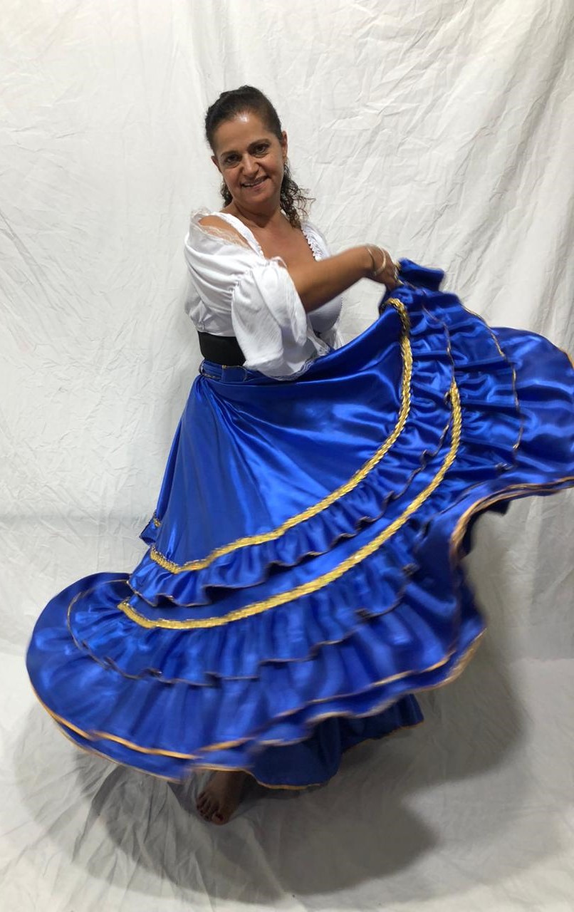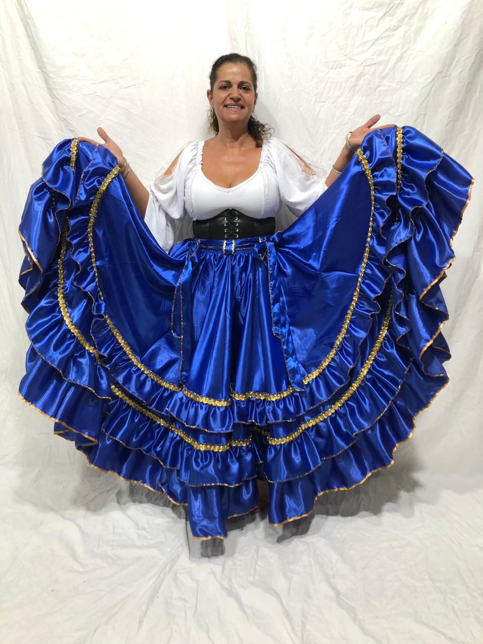 Linda Saia Cigana confeccionada em Cetim com Babados em Acetinado além de fino acabamento, com aproximadamente 12 metros de roda.