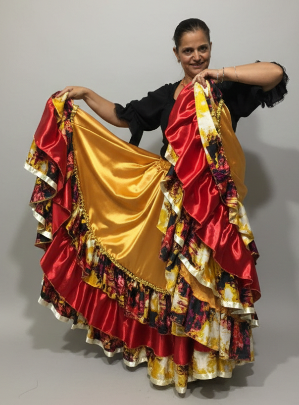 Saia Longa Cigana Modelo 3 Babados com 14 metros de roda