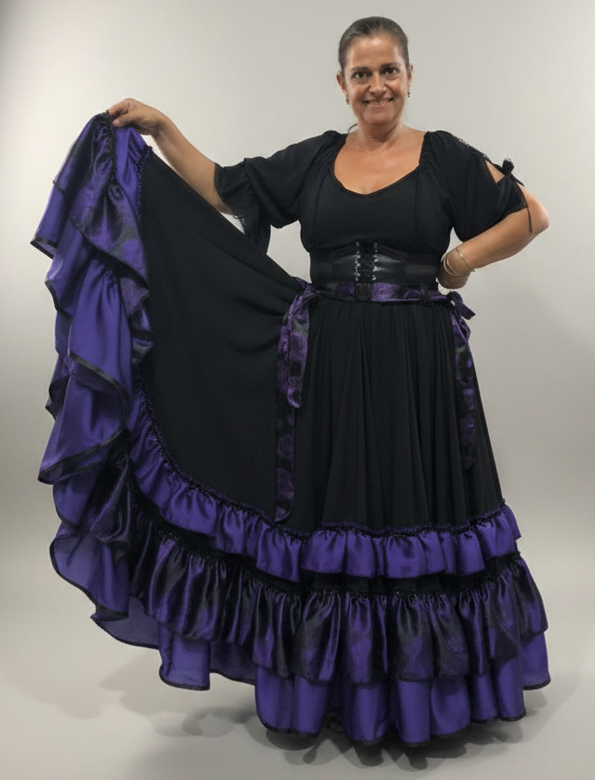 Linda Saia Cigana confeccionada em Acetinado com Babados em Acetinado além de fino acabamento, com aproximadamente 14 metros de roda.
