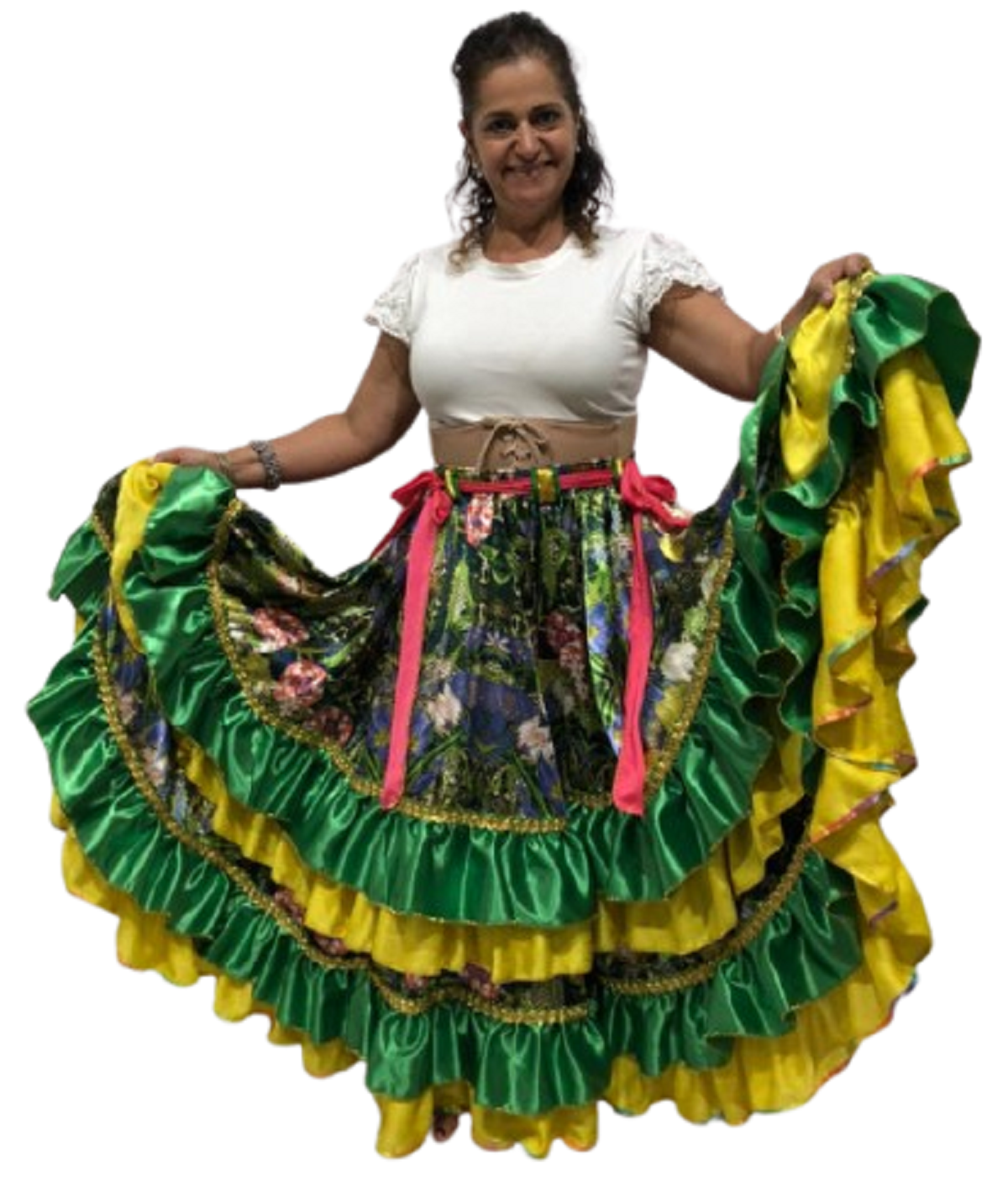 Linda Saia Cigana confeccionada em Cetim com Babados em Cetim além de fino acabamento, com aproximadamente 10 metros de roda.