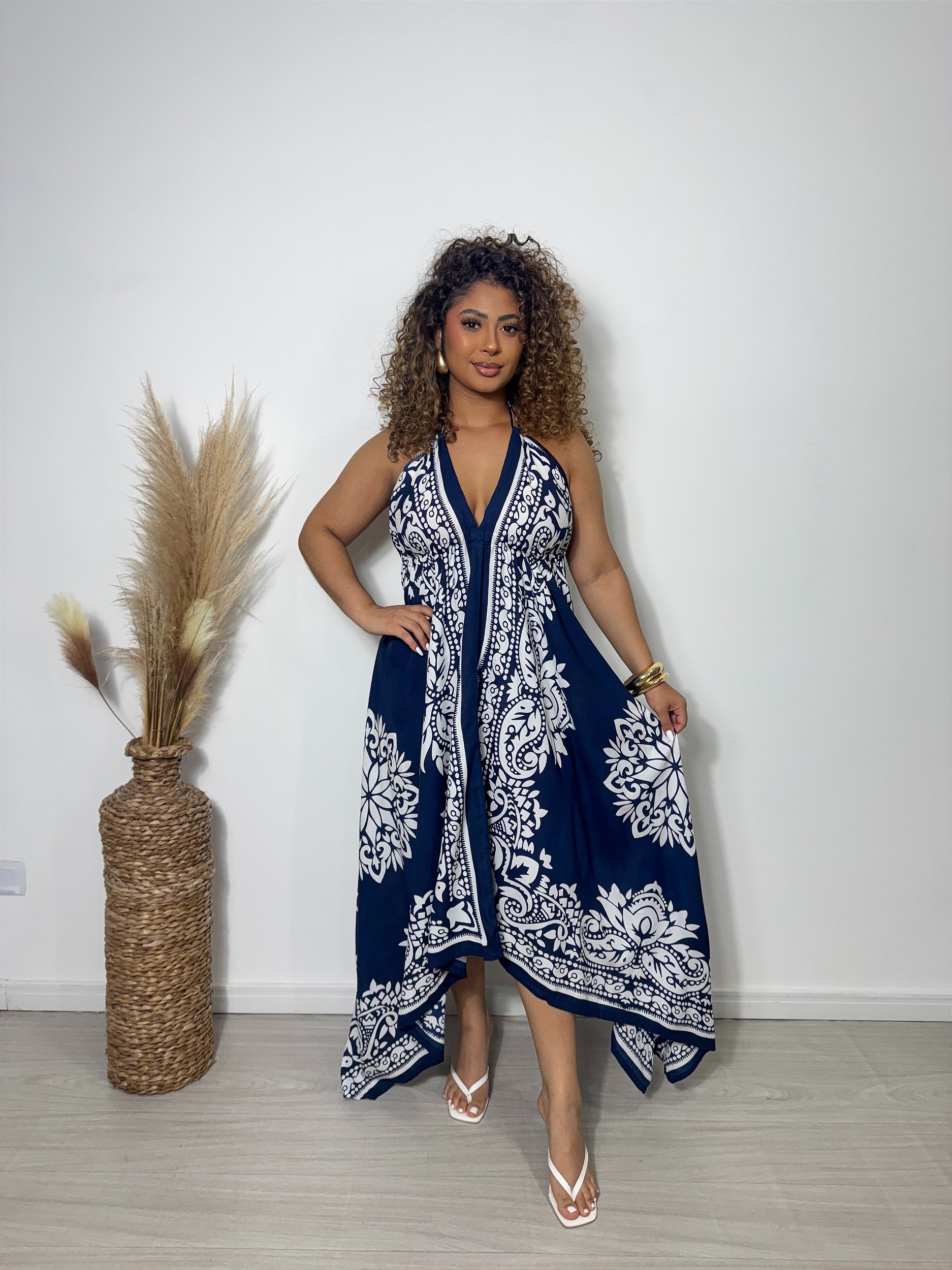 Vestido Longa Estampado Modelo Luxo com um design moderno e despojado