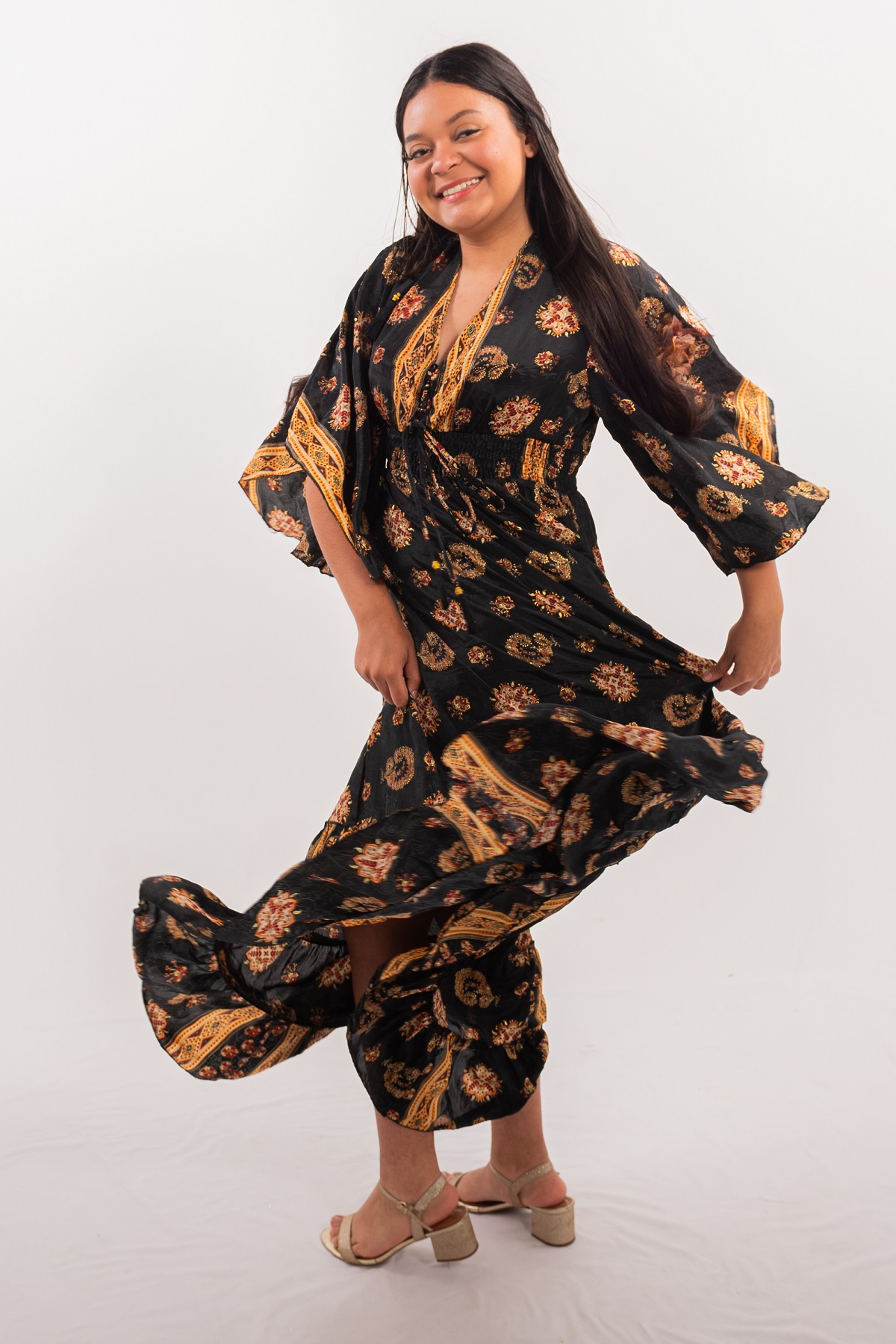 Valorizando a silhueta, esta peça é ideal para mulheres que buscam sofisticação com um toque Indiano, Trazendo a cores vivas e necessária para alegrar ainda mais seu visual no seu cotidiano.