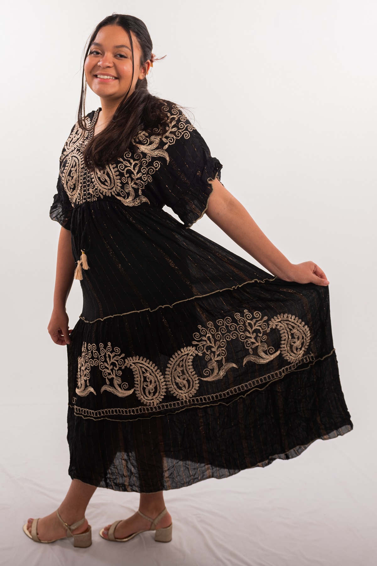 Vestido Midi Bordado Modelo Luxo com um design moderno e despojado